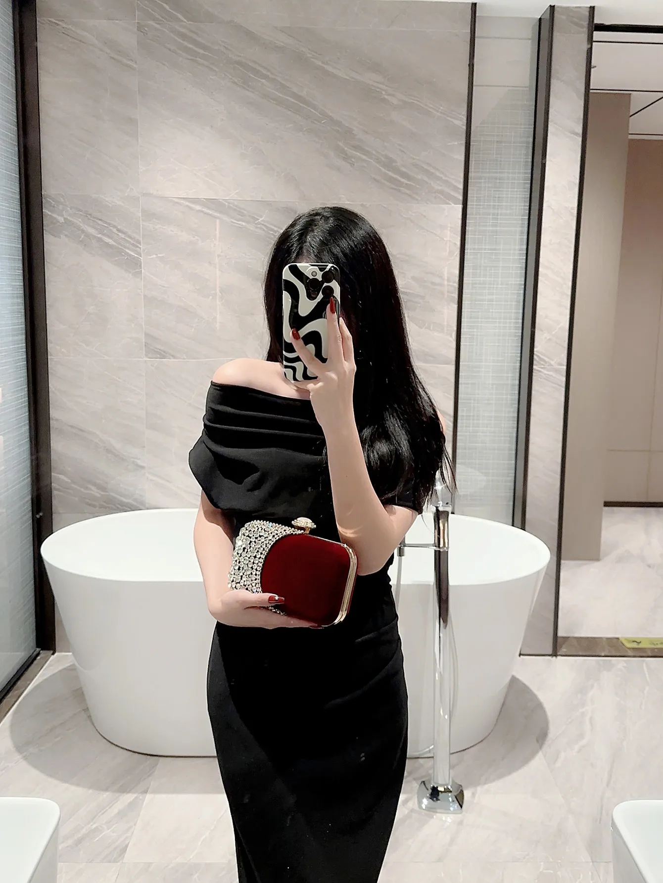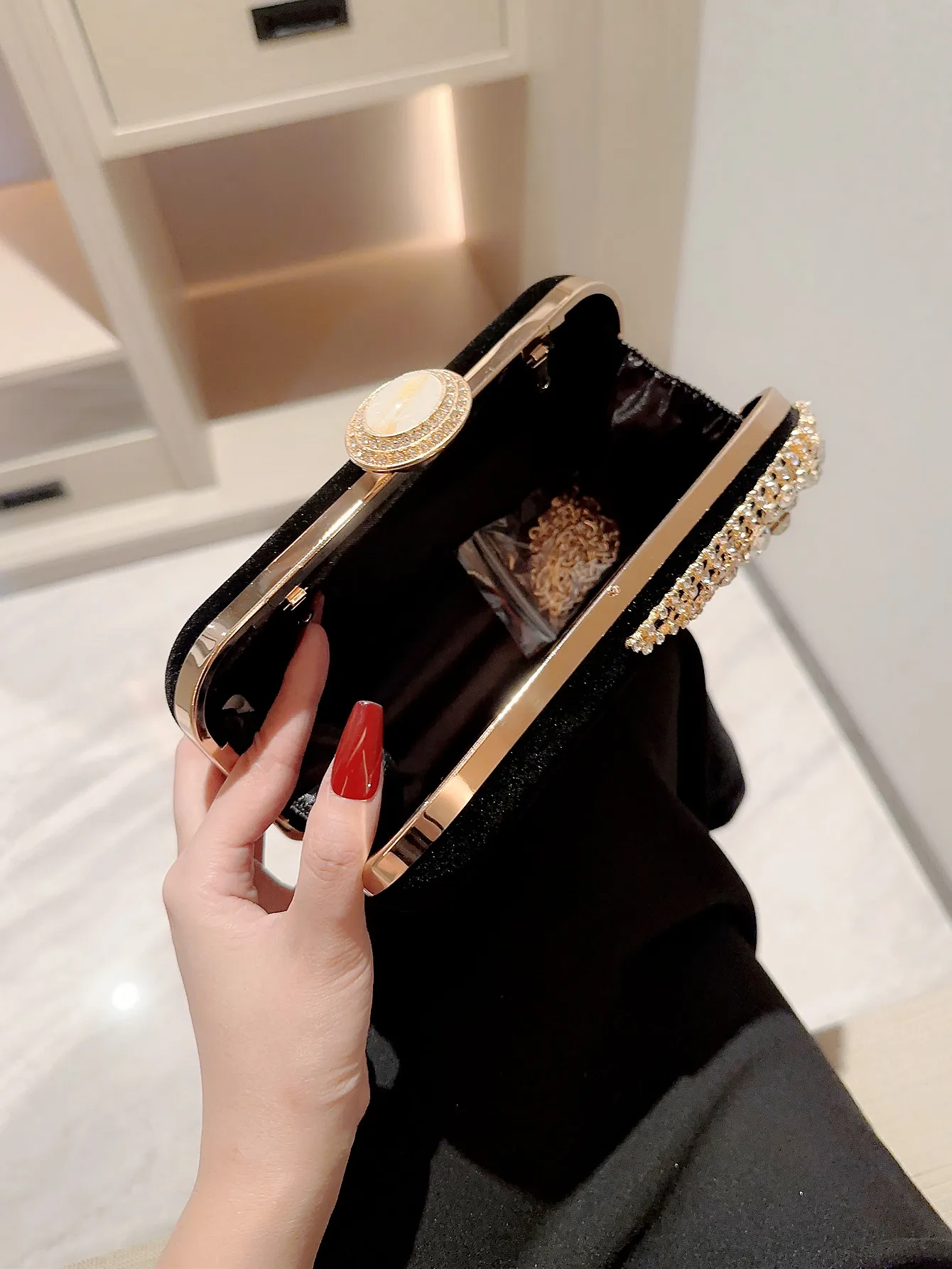 This corduroy minaudière combines retro charm with modern sophistication, making it perfect for elevating your evening outfits. Its soft, textured fabric adds a warm, luxurious touch, while the compact silhouette maintains an elegant and refined style. Ideal for parties, dinners, or special occasions, it complements any dressed-up ensemble beautifully.